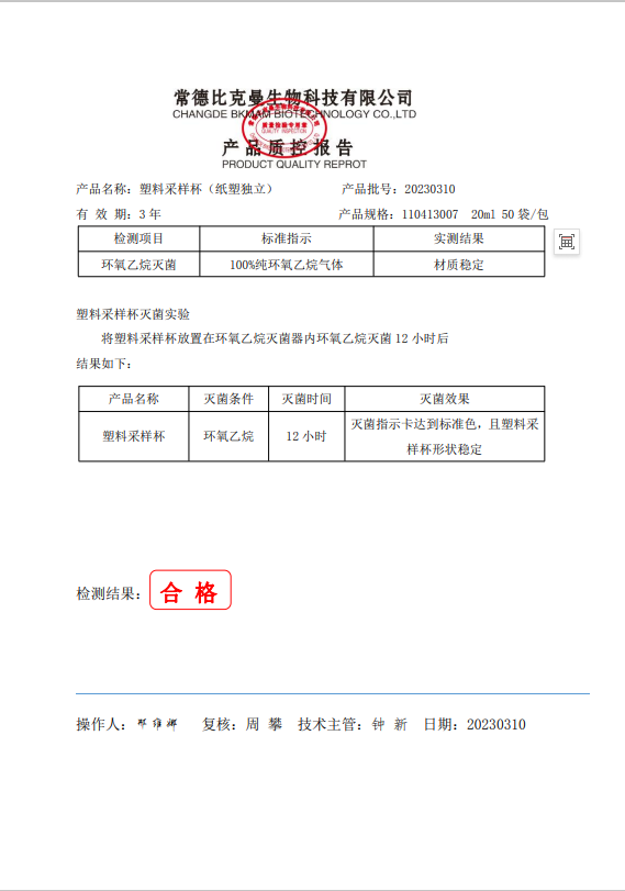 110413007 比克曼生物 采樣杯 (紙塑獨(dú)立) 20ml 1個(gè)袋 50袋包 20230310