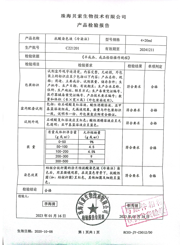 貝索 抗酸染色液(冷染法) 4x20ml C221201