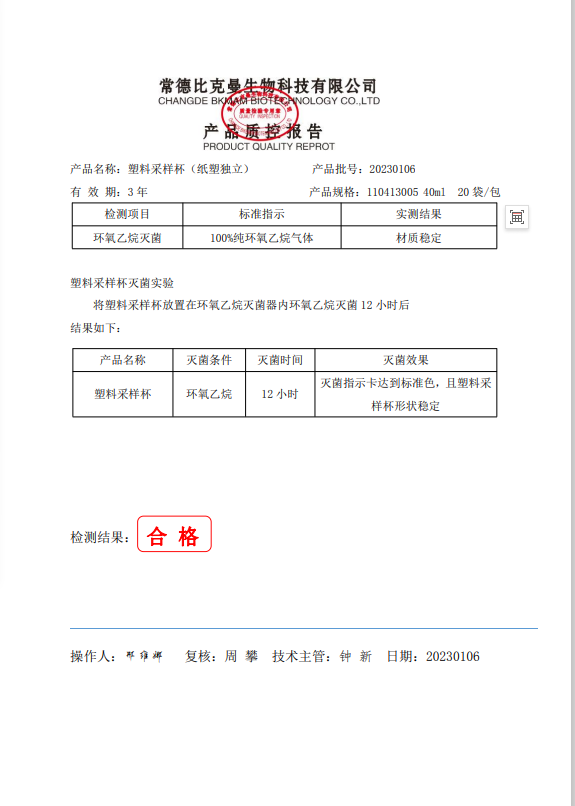 110413005 比克曼生物 采樣杯 (紙塑獨(dú)立) 40ml 1個(gè)袋 20袋包 20230106