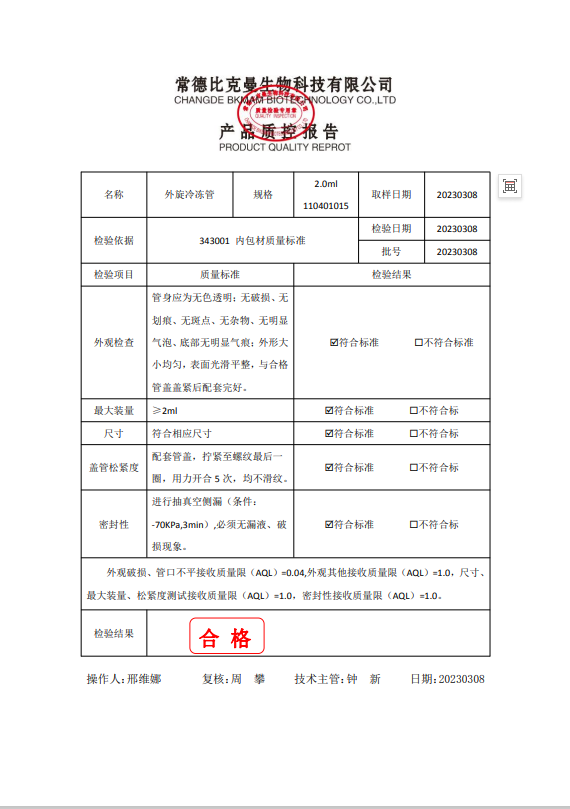 110401015 比克曼生物 外旋冷凍管 (凍存管) 2.0ml 100個袋 20230308