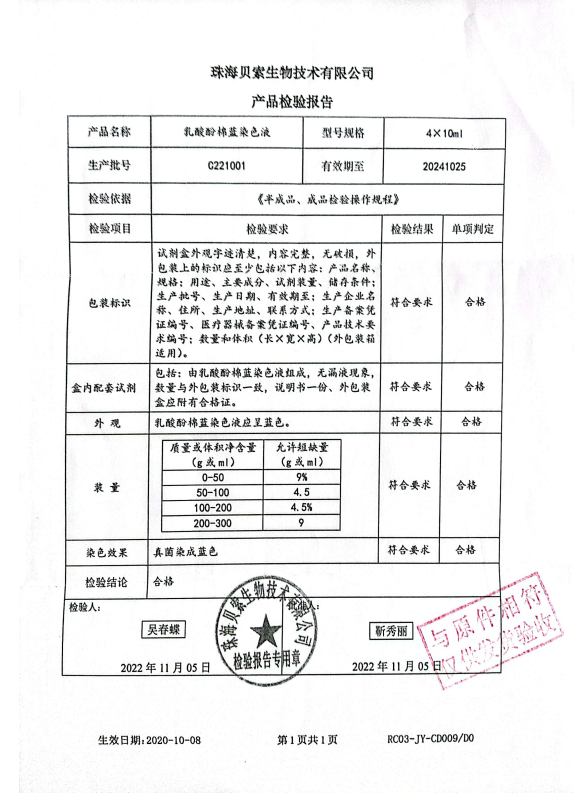 貝索 乳酸酚棉藍染色液 4x10ml BA4124 C221001
