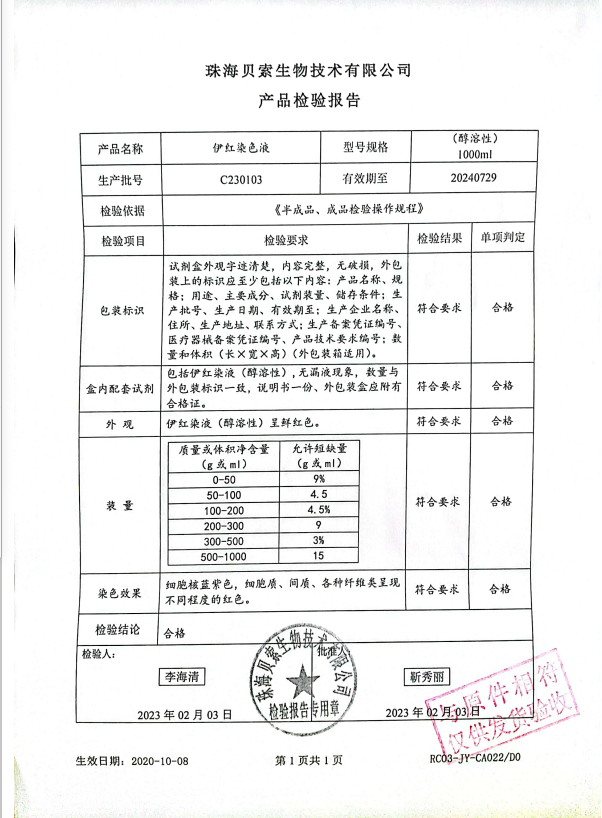 貝索 伊紅染色液(水溶性)1000ml BA4024 C230103