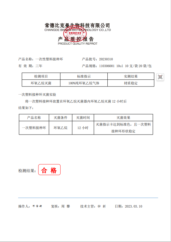 110306001 比克曼生物 一次性塑料接種環(huán) 10ul (10支裝) 10支袋20袋包 20230310