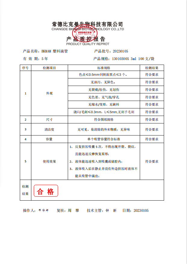 130103005 BKMAM 塑料滴管(獨(dú)立裝) 3ml 100支袋 20230105