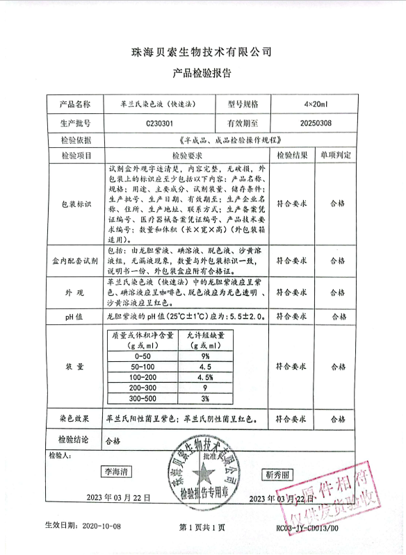 貝索 革蘭氏染色液(快速法) 20ml4盒 BA4032 C230301