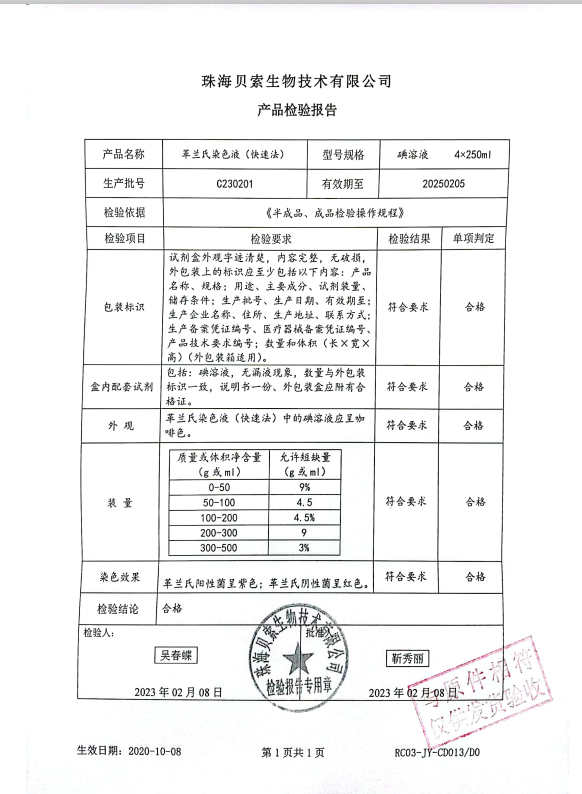 貝索 革蘭氏染色液(快速法) 碘溶液 4x250ml BA-4016B C230201