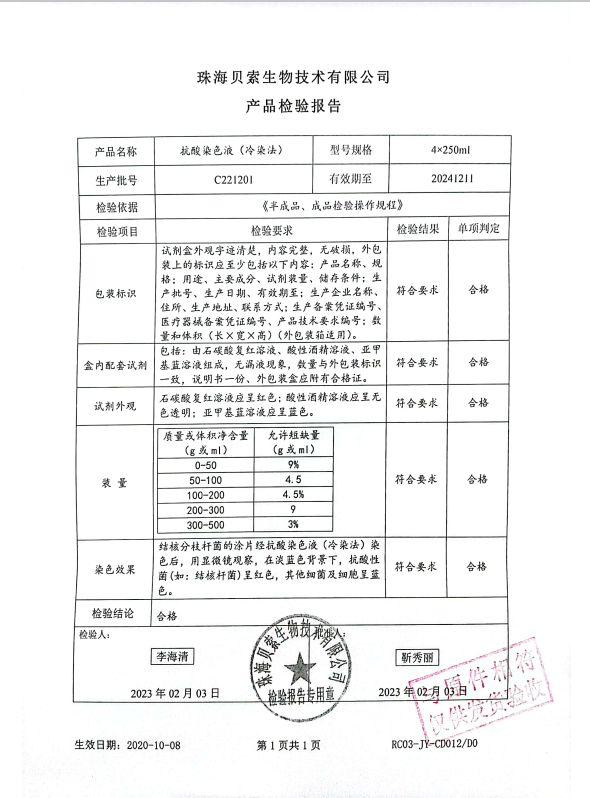 貝索 抗酸染色液(冷染法) 4x250ml C221201