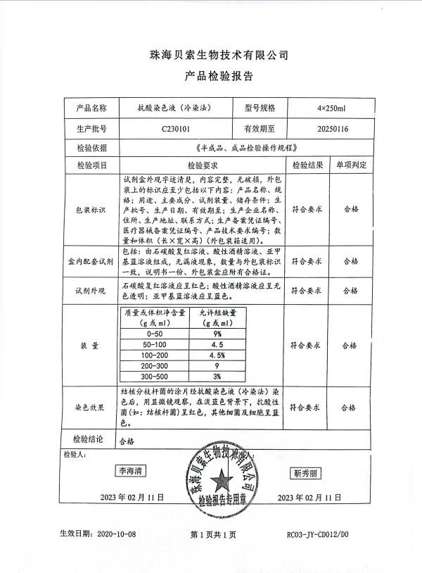 貝索 抗酸染色液(冷染法) 4x250ml C230101