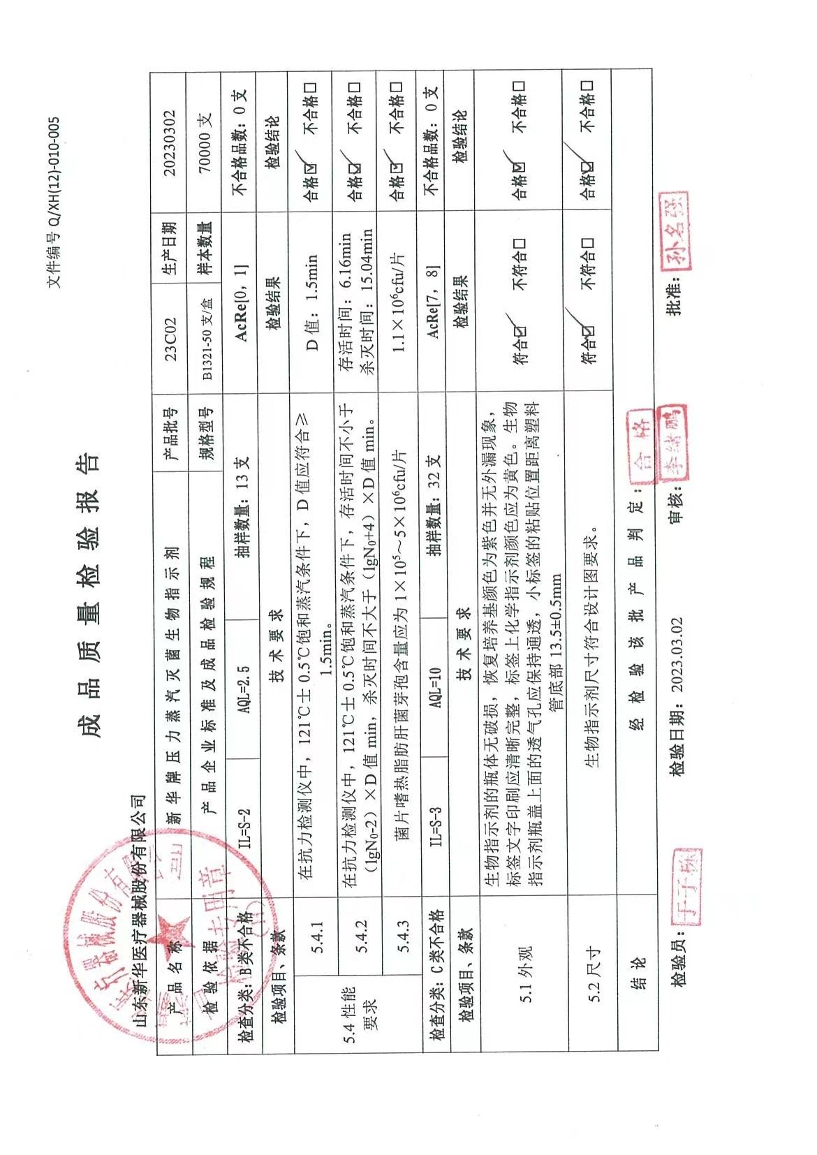 新華牌壓力蒸汽滅菌生物指示劑 B1321-50支盒 批號(hào) 23C02 生產(chǎn)日期 20230302