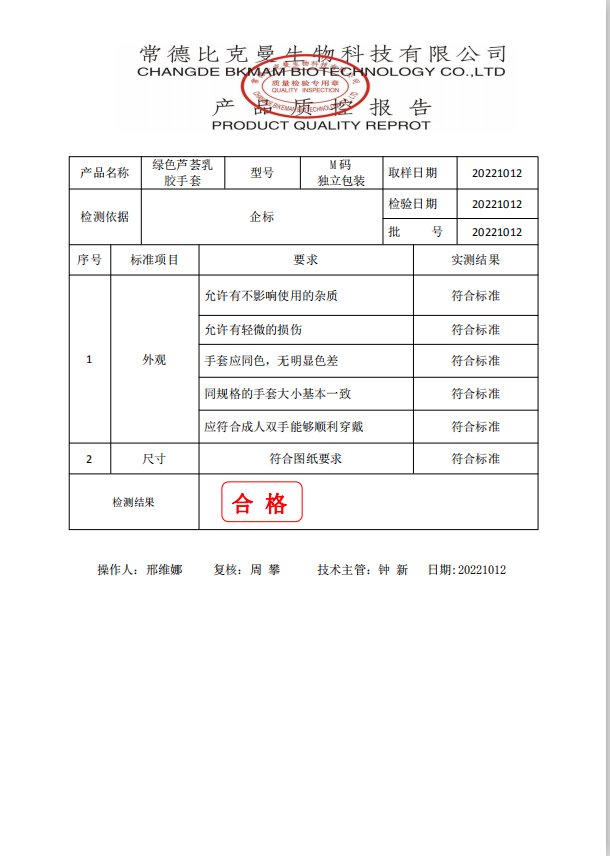 110601019 比克曼生物 綠色蘆薈乳膠手套 M碼 (獨(dú)立包裝) 25雙盒 20221012