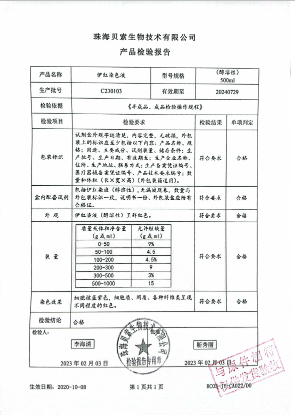 貝索 伊紅染液(醇溶性) 500ml BA4099 C230103