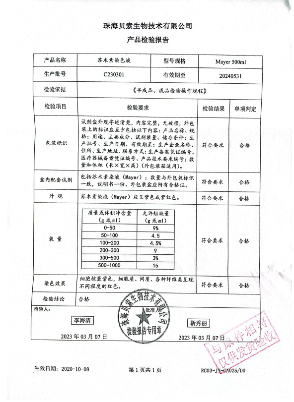 貝索 蘇木素染色液 Mayer 500ml BA4021A C230301