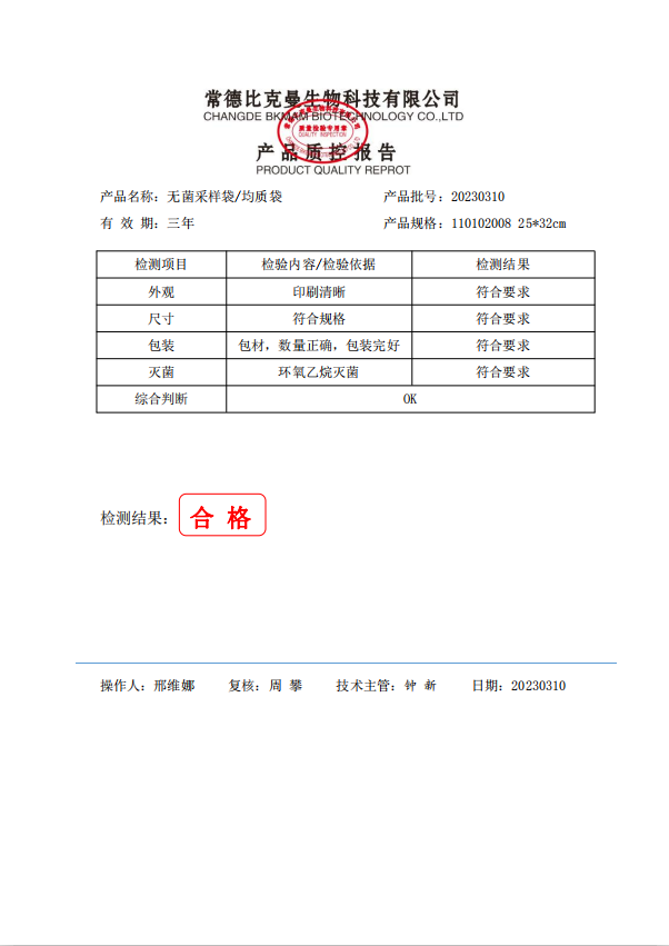 110102008 bkmamlab 立式無菌采樣袋 25x32 (帶壓條) 50個裝 20230310