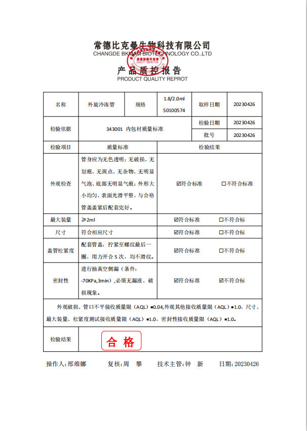 50100574 比克曼生物 外旋冷凍管 (凍存管) 白色無(wú)色標(biāo) 2.0ml 100個(gè)袋 20230426
