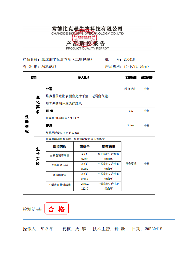 110704011 比克曼生物 血瓊脂平板培養(yǎng)基 (三層包裝)9cm 10個袋 230418