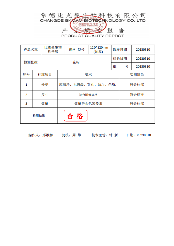 110415004 比克曼生物 稱(chēng)量紙 120x120mm(加厚) 20230310