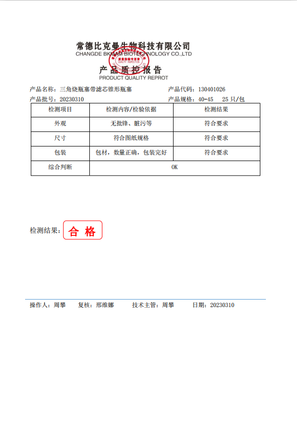 130401026 labshark 三角燒瓶塞帶濾芯錐形瓶塞 40-45 25只包 20230310