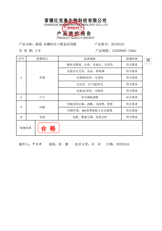 120208003 湘玻 高硼硅絲口橙蓋試劑瓶 250ml 60個(gè)箱 20230310
