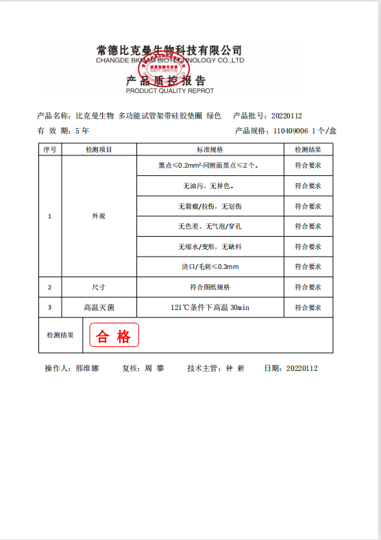 比克曼生物 多功能試管架帶硅膠墊圈 綠色 110409006 20220112