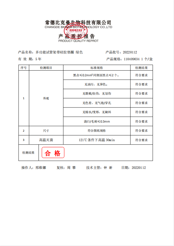 多功能試管架帶硅膠墊圈 綠色 中性 110409034 20220112