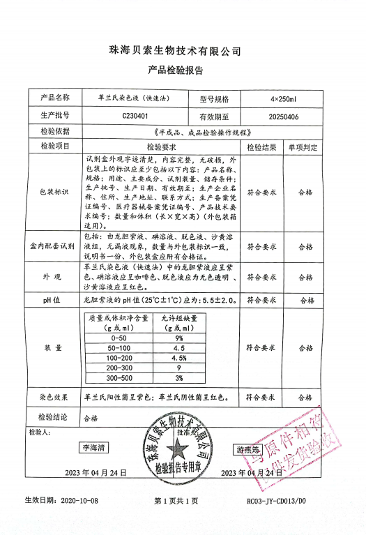 貝索 革蘭氏染色液(快速法) 250ml4盒 BA4012 C230401
