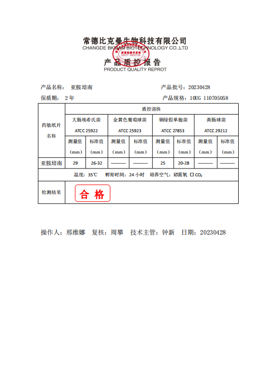 110705058 比克曼生物 亞胺培南 10UG 20片瓶 20230428