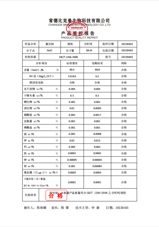 110702034 比克曼生物 氯化鈉 AR 分析純 500g瓶 20230403