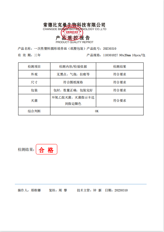 110301027 bkmamlab 一次性塑料圓形培養(yǎng)皿 (紙塑包裝) 90x20mm 10個(gè)袋 20230310