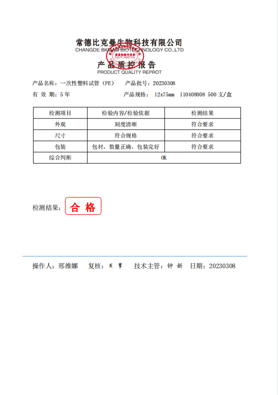 110408008 bkmamlab 一次性塑料試管(PE) 12x75mm 500支盒 20230308