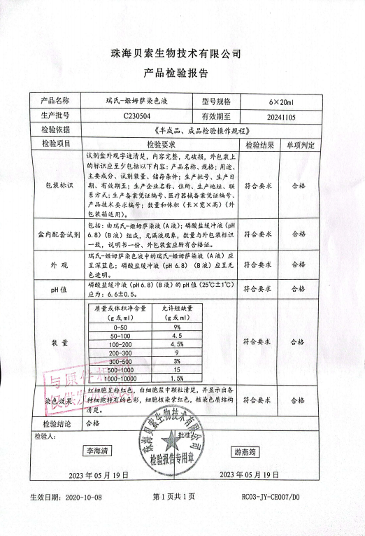 貝索 瑞氏-姬姆薩染色液 20mlx6 C230504