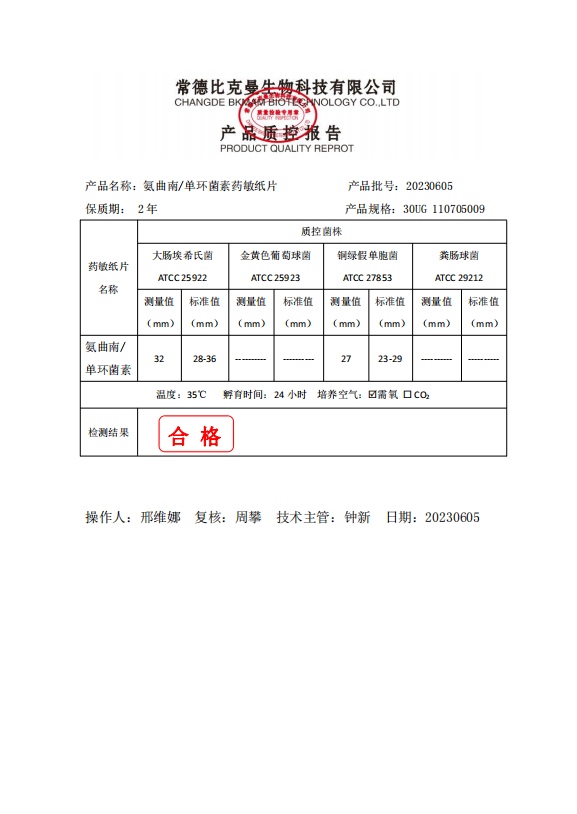 110705009 比克曼生物 氨曲南 單環(huán)菌素 30UG 20片瓶 20230605