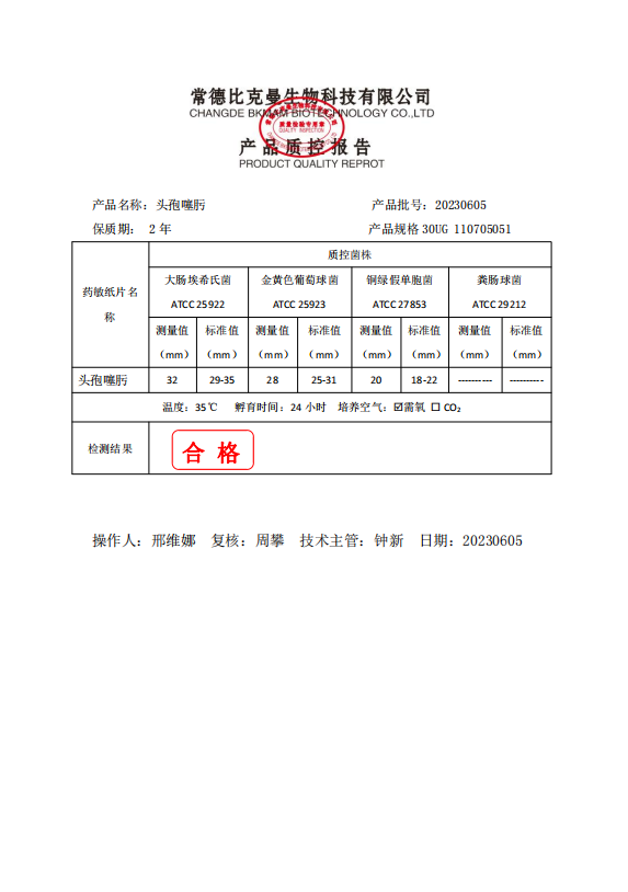 110705051 比克曼生物 頭孢噻肟 30UG 20片瓶 20230605