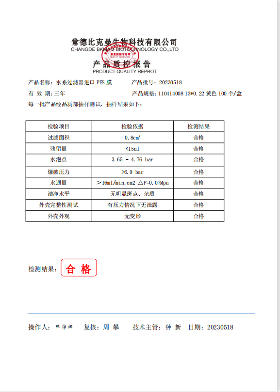 110414008 bkmamlab 水系過濾器 進(jìn)口PES膜 13x0.22 黃色 100個(gè)盒 20230518