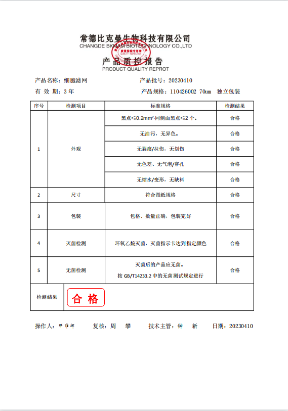 110426002 bkmamlab 細(xì)胞濾網(wǎng) 70um 1個(gè)袋 20230410