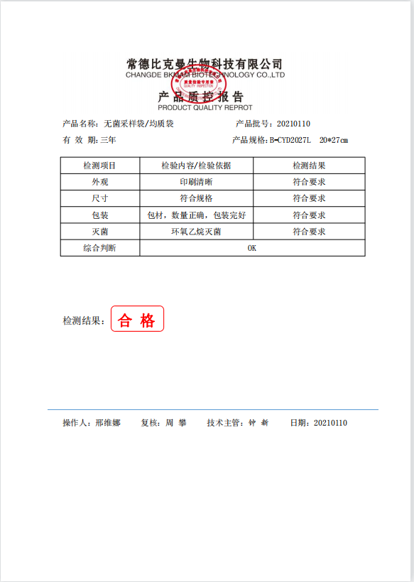 立式無菌采樣袋 20x27(帶壓條) 100個裝 B-CYD2027L 20210110
