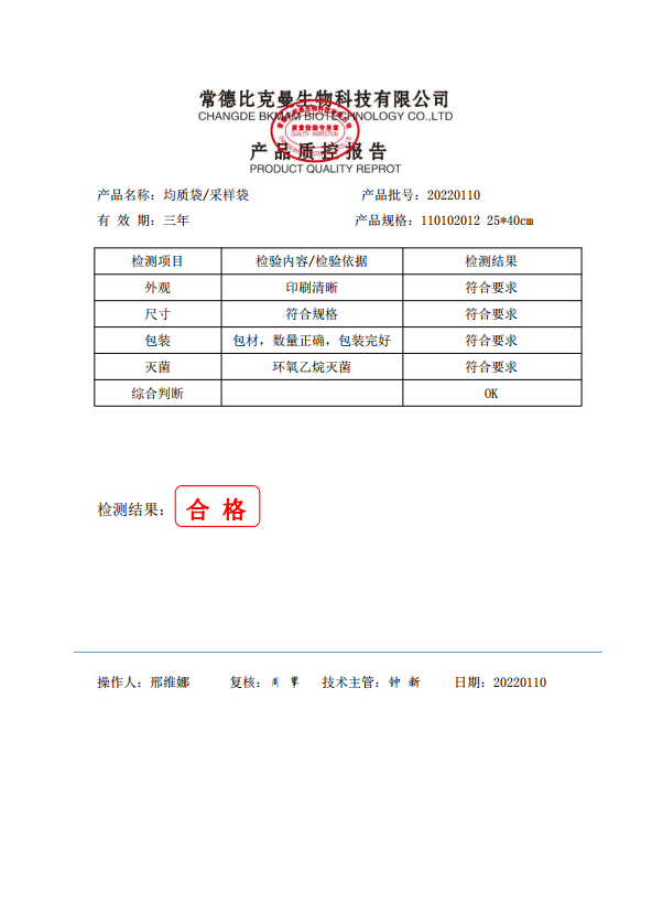 立式無菌采樣袋 25x40 (有印刷無LOGO帶壓條) 50個(gè)裝 110102012 20220110