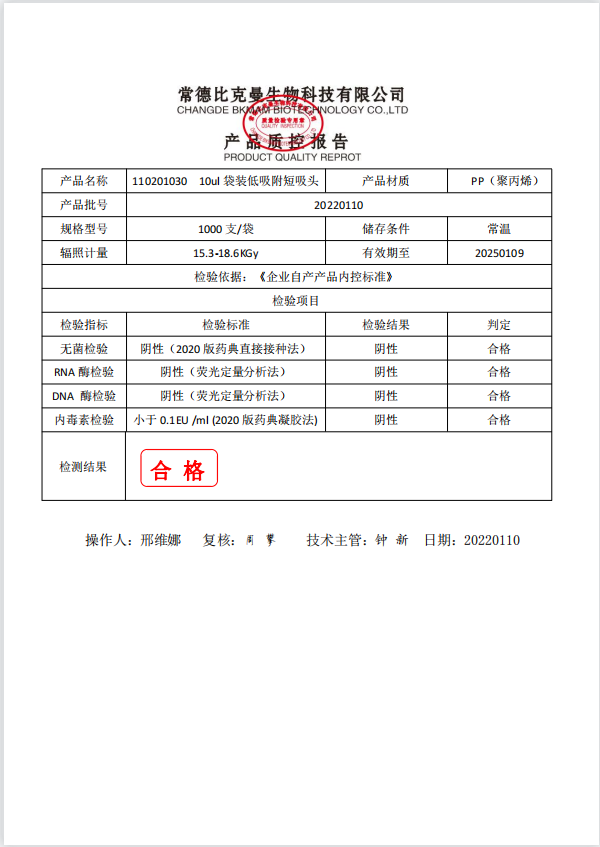 袋裝吸頭 10ul 袋裝低吸附短吸頭 1000支裝 110201030 20220110