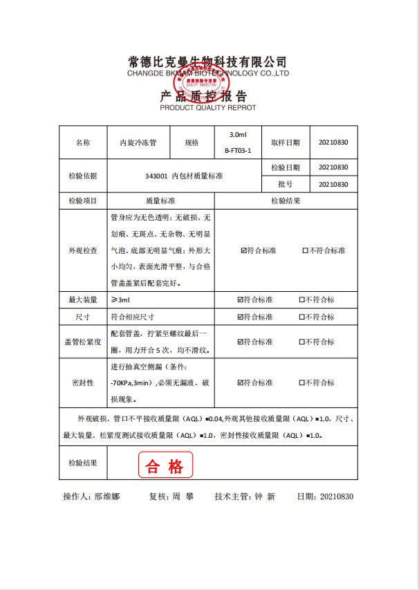 內(nèi)旋冷凍管 (凍存管) 3.0ml 100個袋 B-FT03-1 20210830