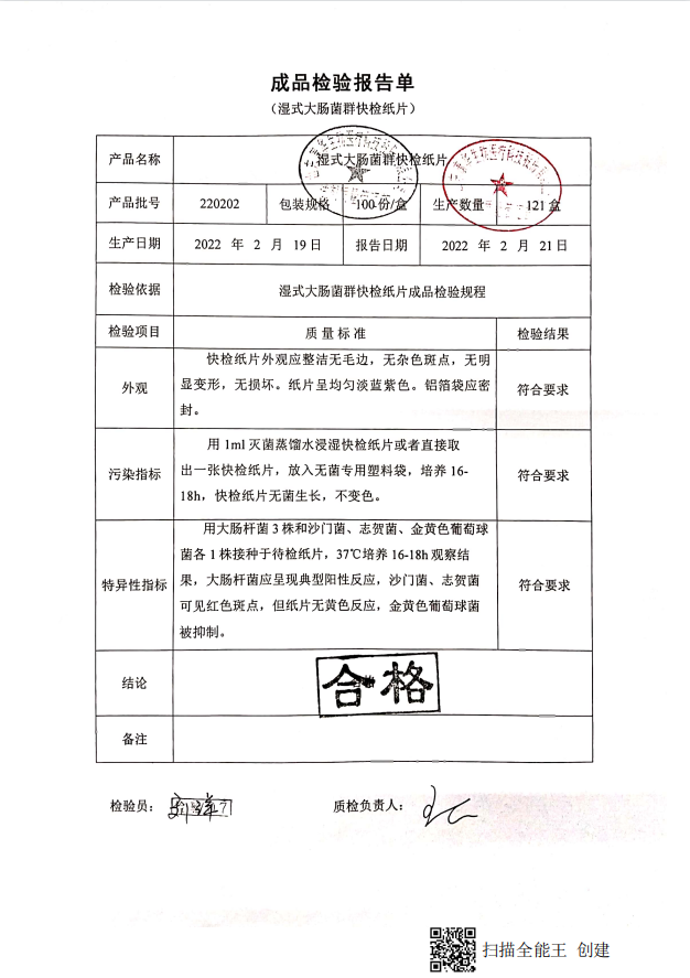 濕式大腸菌群快檢紙片 100份盒 160711012 220202
