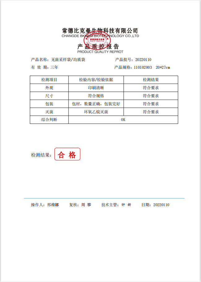 立式無菌采樣袋 20x27(帶壓條) 100個裝 110102003 20220110
