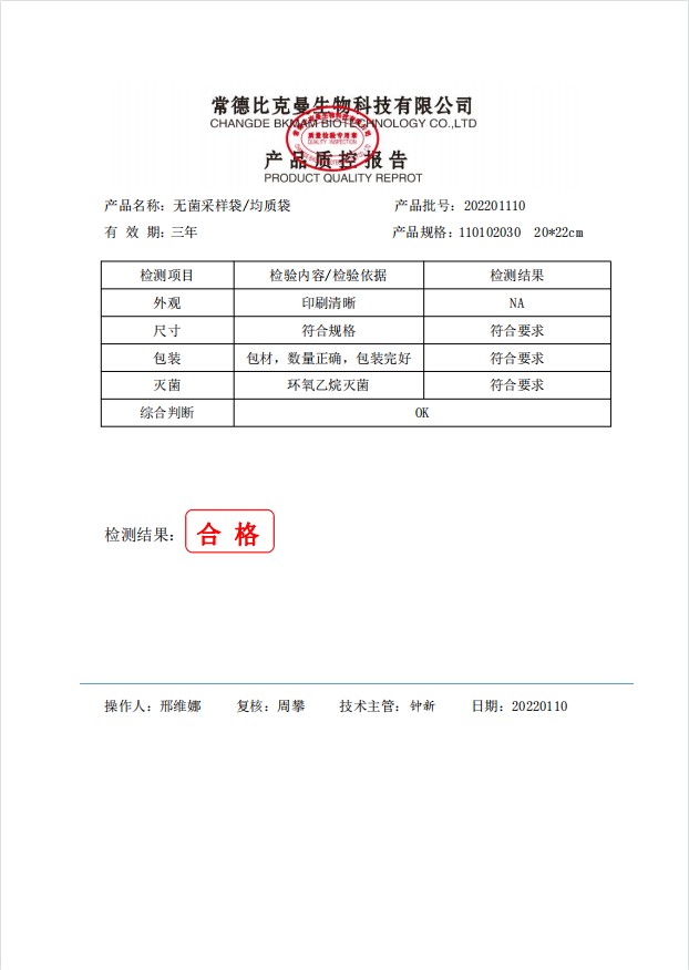 立式無(wú)菌采樣袋 20x22(無(wú)印刷帶壓條) 100個(gè)裝 110102030 20220110