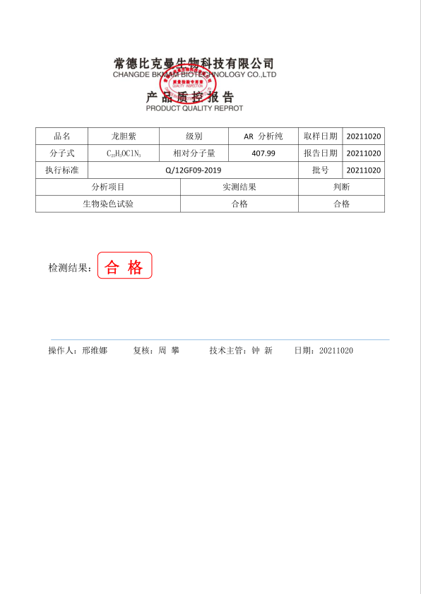 比克曼生物 龍膽紫 AR分析純 100g瓶 110702030 20211020