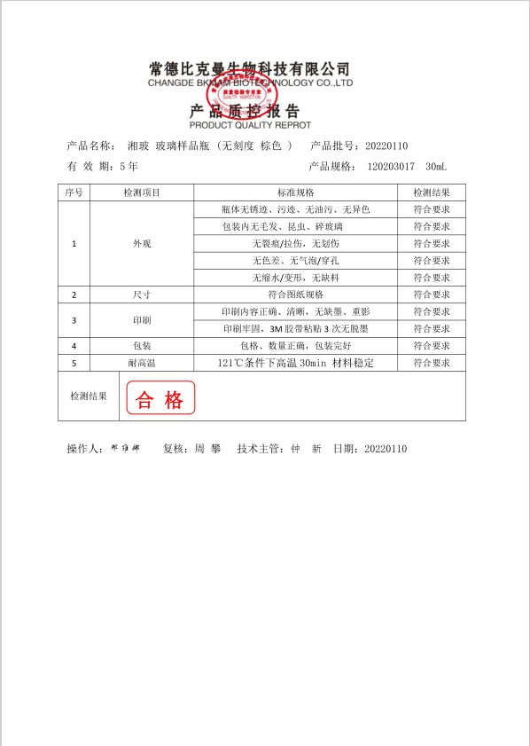 湘玻 玻璃樣品瓶 (無刻度 棕色 ) 30ml 120203017 20220110