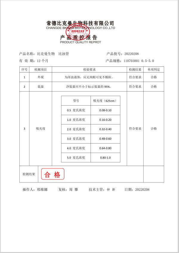 比克曼生物 比濁管 110703001 0.5-5.0 20220208