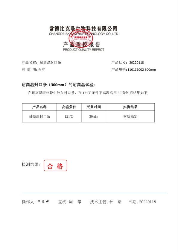 比克曼生物 耐高溫封口條300mm 50根包 110111002 20220118