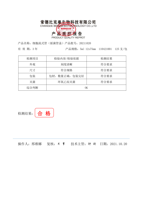 比克曼生物 細胞流式管(搖菌管蓋) 5ml 12x75mm 125支袋 110421001 20211020