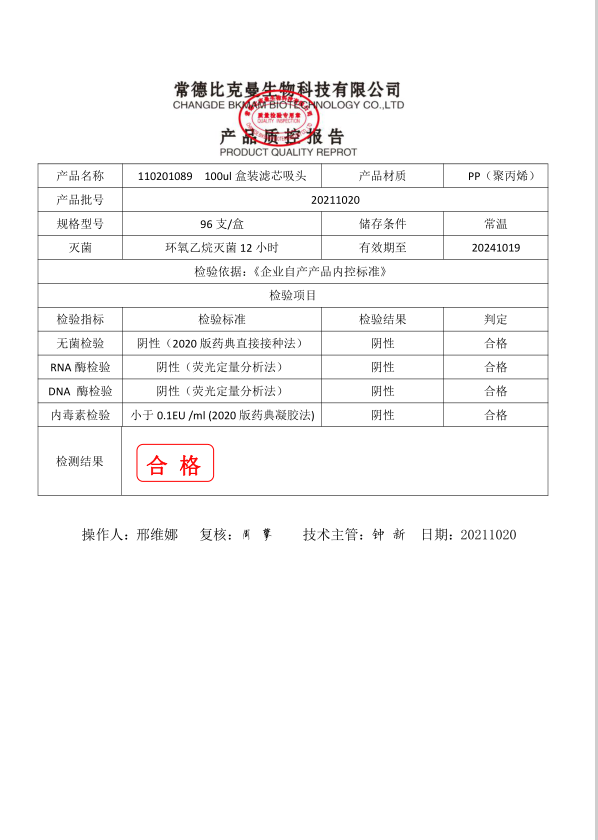 盒裝濾芯吸頭 100ul 盒裝濾芯吸頭 96支裝 110201089 20211020