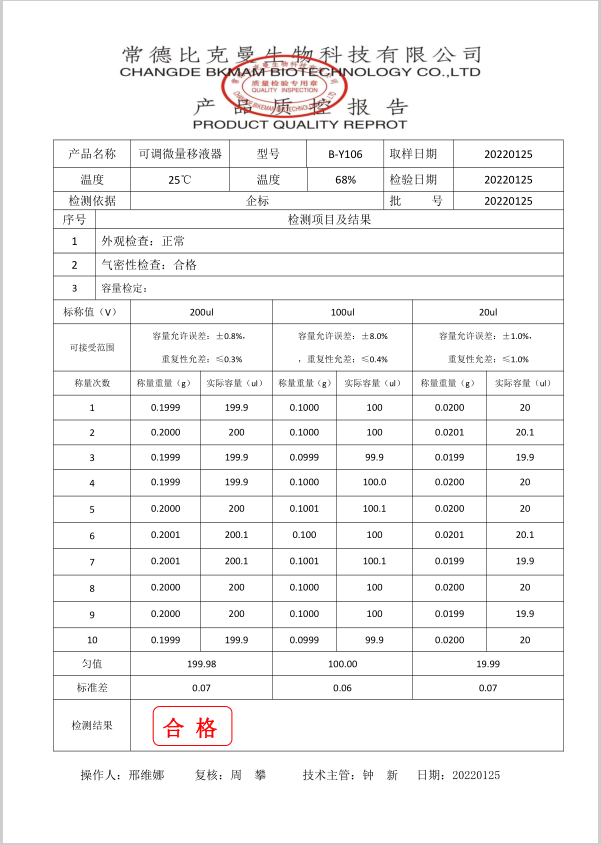 比克曼生物 微量移液器可調(diào)移液槍 20-200ul (單道)1把盒 110202007 20220125