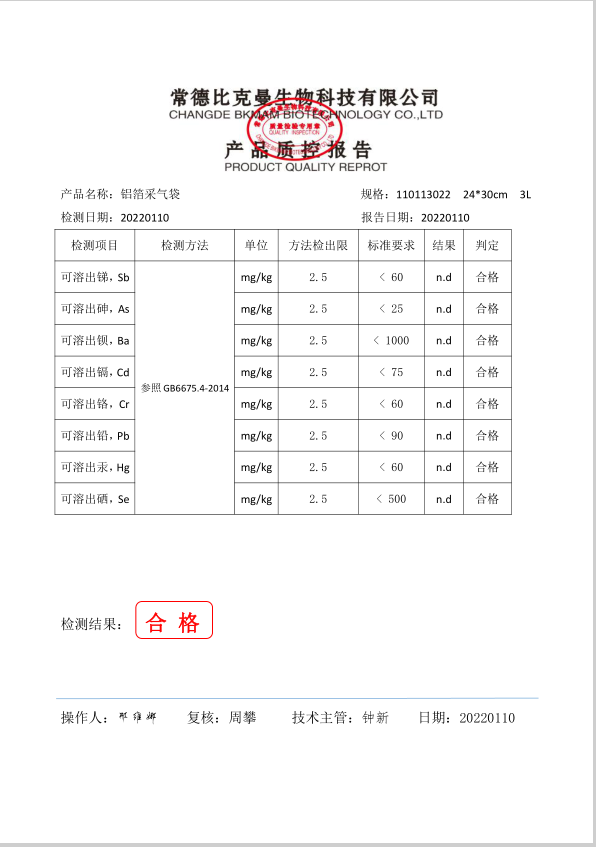 比克曼生物 單閥門(mén)鋁箔采氣袋 24x30cm 3L 110113022 20220110