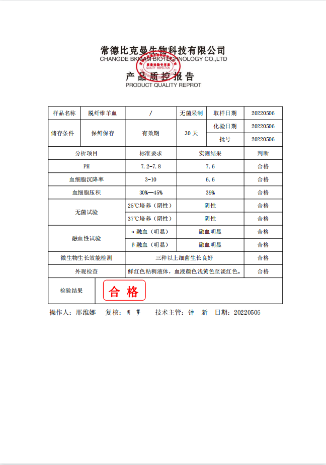 比克曼生物 脫纖維羊血 100ml瓶 110704020 20220506